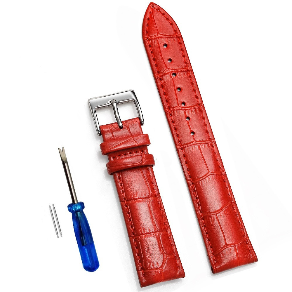 Ремінець шкіряний для годинника 22 мм червоний, пряжка - срібляста